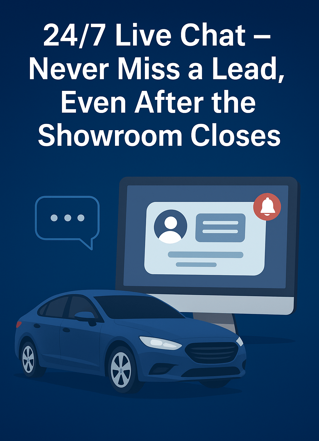 Car buyers don’t stop shopping when the lights go off at your dealership — but most sales teams do. With 24/7 live chat support, dealerships can respond instantly to vehicle inquiries, schedule test drives, answer financing questions, and capture high-intent leads in real time, even after business hours.